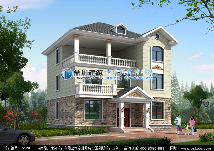 YW068新農村三層小別墅圖紙效果圖,三層自建房屋設計圖