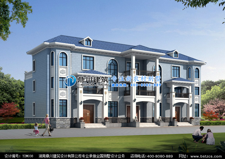 YZM038三層三戶聯排別墅設計圖外觀效果圖,鼎川建筑聯排別墅私人定制設計