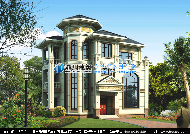 LX016歐式三層別墅私人定制設計外觀效果圖,鼎川建筑三層別墅圖紙設計