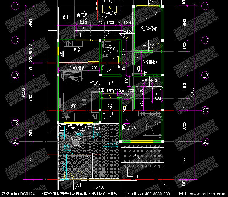 | 一 層: | 客廳、老人房、廚房、餐廳、衛生間、儲藏間、農用車庫、畜舍 | |||