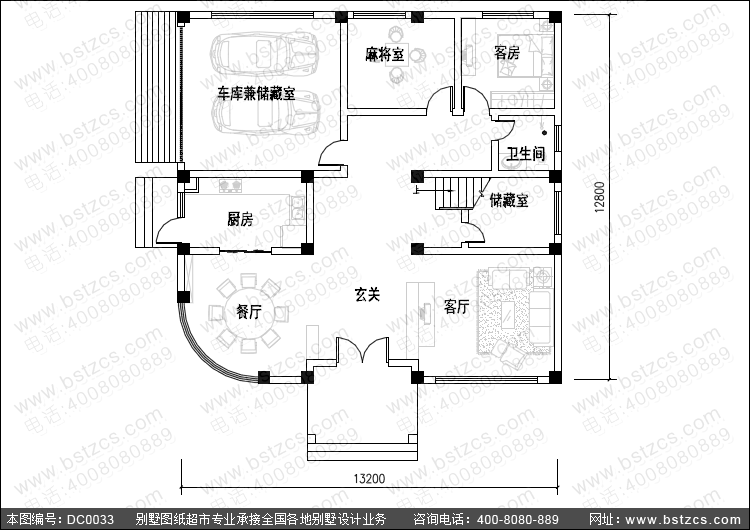 | 一 層: | 客廳、麻將室、客房、廚房、餐廳、衛生間、儲藏室、車庫 | |||