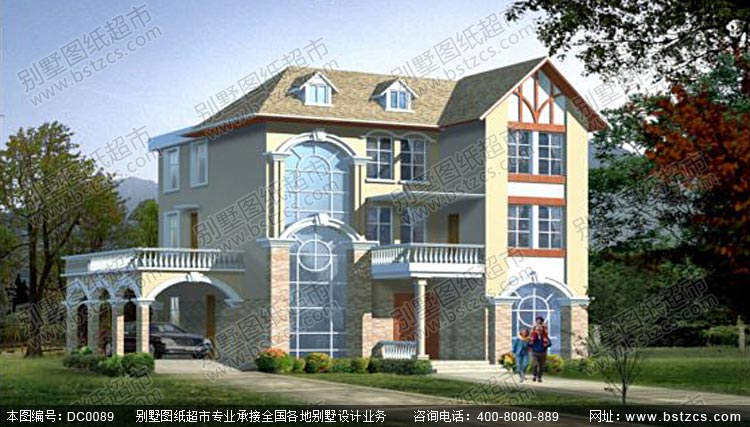 時尚三層帶車庫露臺別墅設計圖紙_別墅設計圖紙,農村房屋設計圖